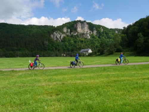 Wir haben Sommer 2021 und es regnet und regnet. Wenn zwischendurch die Sonne ihre Strahlen hinter der Sonne hervorbringt, radeln wir durch eine Mischung aus Radwegen, neu entstandenen Wasserstraßen und Matschfeldern. Wir sind hin und hergerissen. Zum einen ist da der Wunsch den ersten Teil des Donauradweges mit seinen Felsen, Wiesen und Wäldern zu erleben, diesen ersten Teil, der uns noch fehlt, endlich zu erradeln. Auf der anderen Seite schleichen sich Abbruchgedanken in unsere Köpfe. Das erste Mal seit wir reisen überhaupt. Wir schaffen es bis Ulm und auf dem Weg dorthin hatten wir trotz Regen viele wunderbare Stunden und ungewöhnlich viele „Wasser-Erlebnisse“.