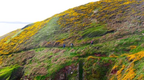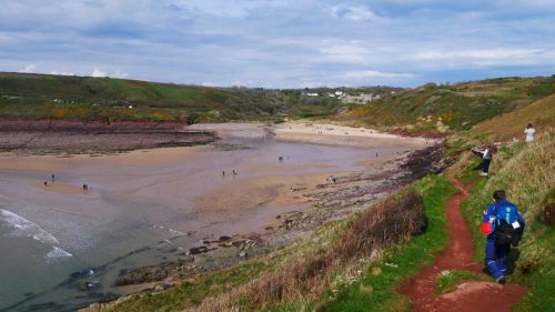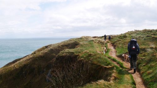 Mäh! Ein flauschiges Schaf schaut etwas irritiert als wir vollgepackt seinen Weg auf der Klippe kreuzen. Es scheint nicht recht glauben zu wollen, dass sich bei dem windigen Wetter noch jemand außer ihm hier nach draußen wagt. Es ist Anfang April und wir sind mit Zelt und Hund unterwegs auf dem Pembrokeshire Coast Path in Wales. Dieser Wanderweg schlängelt sich immer entlang der walisischen Küste und hinter jeder Kurve wartet ein immer noch atemberaubenderer Ausblick. Es geht auf und ab. Sonne, Wind und Regen wechseln sich stetig ab und wir genießen unser erstes Mal in Wales so sehr, dass wir bestimmt nochmal wieder kommen!