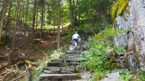 500 Stufen sind geschafft. Der Schweiß rinnt. Noch 310 weitere dicke, steinerne Stufen. Dann haben wir die Alpe Rui in West-Telemark und damit den ersten Abschnitt der heutigen Tour erreicht. Auf der Alpe Rui habe zwei Schwestern bis ins hohe Alter allein gelebt und beim Anblick des Weges vor uns können wir uns gut vorstellen, warum die Beiden die Alpe kaum je verlassen haben. Beim Erreichen jedoch sind wir uns sicher, es war nicht der anstrengende Weg, der sie gehindert hat. Nein, es war die bezaubernde Aussicht auf den unten liegenden Fjord, die Ruhe rund um ihren traditionellen Hof und bestimmt auch ein bisschen die fröhlichen Ziegen, deren Nachfahren auch uns herzlich begrüßen. In der Telemark schlagen wir unsere Zelte auf und wandern von dort in verschiedene Richtungen um dieses Gebiet von Norwegen ein bisschen besser kennen zu lernen. Und, was sollen wir sagen. Norwegen überzeugt!