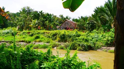Unser Einbaum nimmt eine gefährliche Schräglage ein, während wir um die nächste Kurve des mäandernden Flusses brausen. Instinktiv nehme ich meine Hände hoch und greife an die rauen Kanten des Bootes, welches tatsächlich aus nur einem großen Baum gezimmert wurde. Bislang hatte ich die Arme um meine Knie geschlungen und dieser für mich bequemen Sitzposition die neue Welt rechts und links am Ufer förmlich aufgesaugt. Grün! Ein leuchtendes Grün in so vielen Farbtönen, dass ich mir nicht sicher bin, ob wir in der deutschen Sprache genügend Wörter für all diese Nuancen haben. Sie zeigen sich in zaghaftem gelbgrün, funkeln in sattem dunkelgrün und strahlendem türkisgrün bis hin zu knalligem gelbgrün. Dazwischen immer wieder bunte Tupfer in leuchtendem rot oder glänzendem goldgelb. Blüten und Früchte, die ich so noch nie gesehen habe. All diese Farben fliegen immer schneller und schneller an mir vorbei. Agoi gibt Gas. Der Außenbordmotor spuckt ein gleichmäßges Tuktuktuk aus und Agoi drosselt den Motor nur dann ein wenig, wenn die Kurve vor uns so eng wird, dass sie in Kombination mit voller Fahrt vermutlich ein Kentern unseres Einbaumes zur Folge hätte. Schlammig braunes Dschungelwasser spritz und schwappt über die Spitze unseres Bootes.